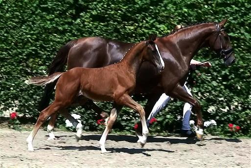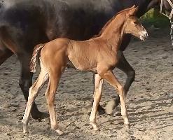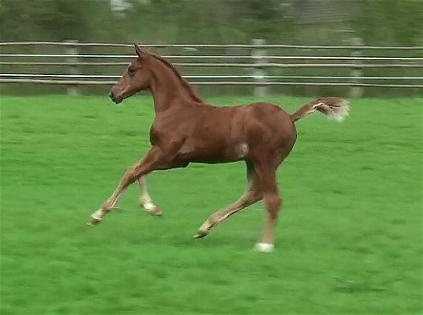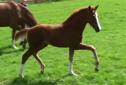 Wie in den beiden Jahren zuvor hat unsere "Weltklasse" bei der Anpaarung mit Quaterback ein elegantes und hoch bewegungsstarkes Fuchs Stutfohlen zur Welt gebracht.